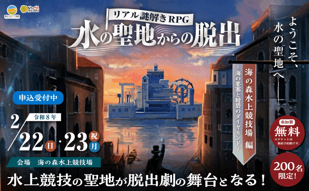 2月22日(日)、23日(月・祝)に、リアル謎解きRPG「水の聖地からの脱出」が開催されます。
