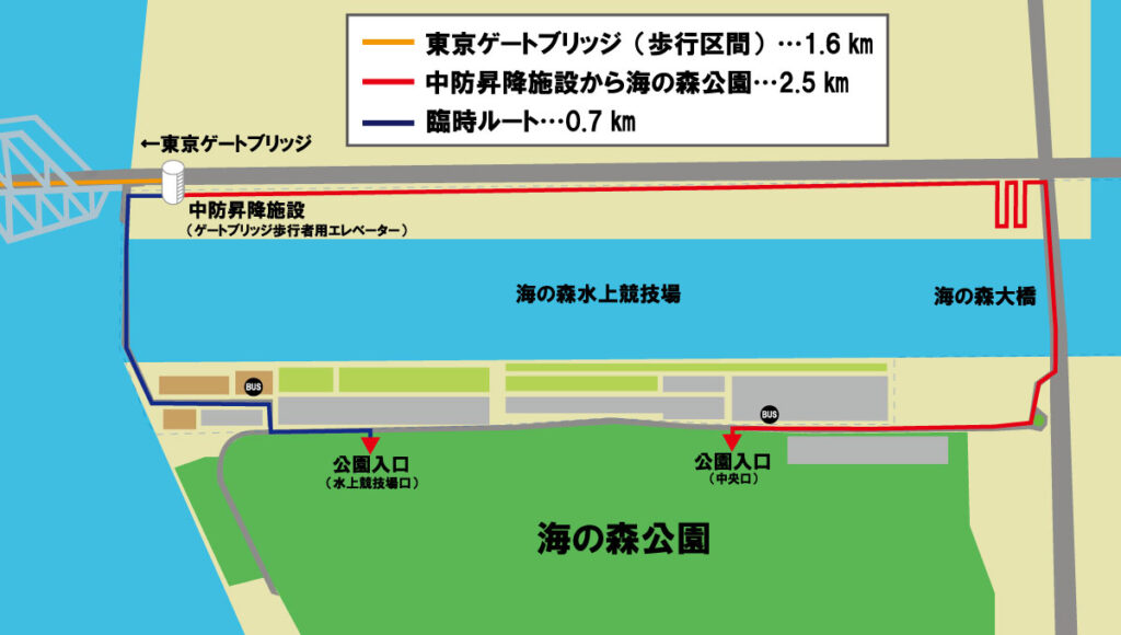 ●ゲートブリッジ中防昇降施設の海の森水上競技場側の開門について(臨時ルートのご案内)